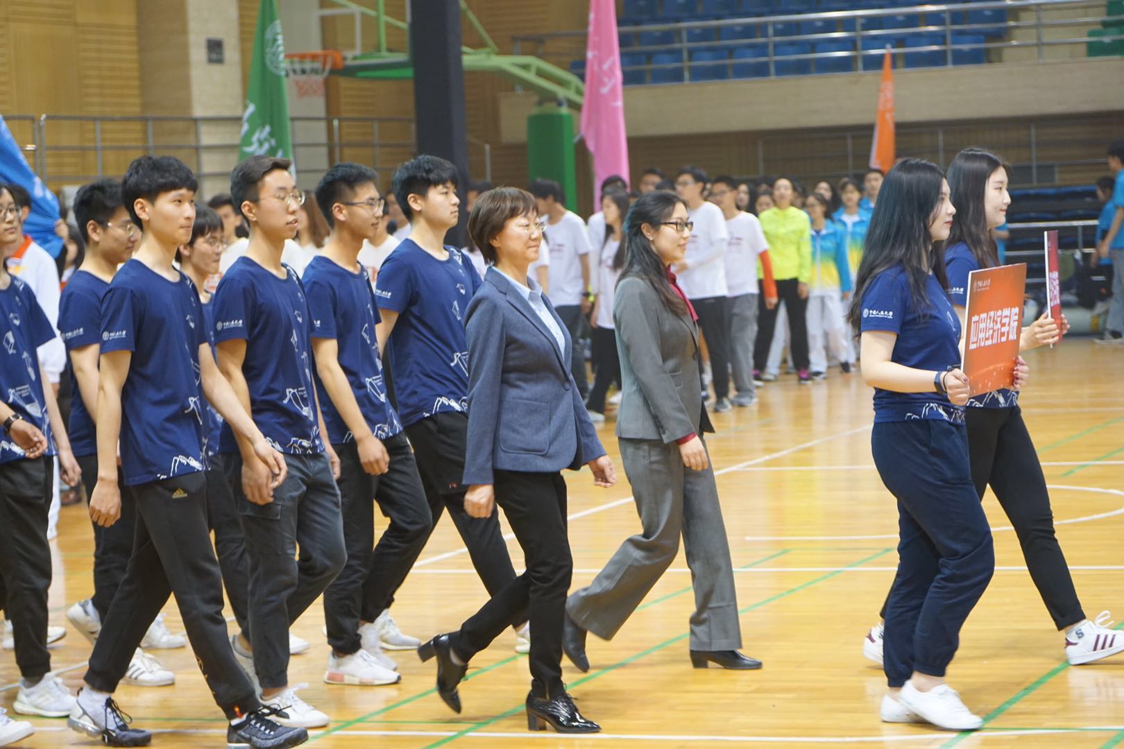 4月13日晚,运动会开幕式在世纪馆隆重举行。黑料社 党委书记宋东霞参加运动员队伍入场仪式并在前排护旗。我院与经济黑料社 组成联队,服装统一、精神昂扬地从主席台前走过并挥手致意。在随后的环节中,联队与全场一起合唱歌曲《我们都是追梦人》。
