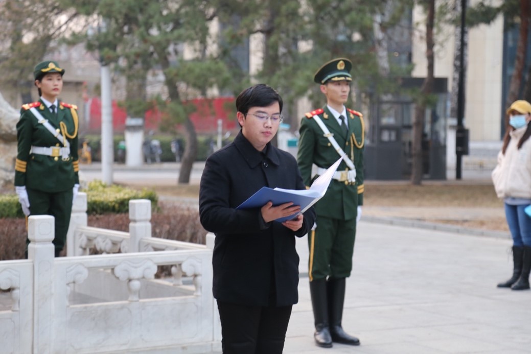 随后,我院的冯天灏同学进行国旗下演讲,“国歌是一首歌,又不止于一首歌,它是中国人民和中华民族众志成城、克服一切艰难险阻的精神灯塔……”冯天灏同学慷慨激昂的演讲传达了应经学子誓将青春与家国、小我与大我紧密结合的坚定信念。