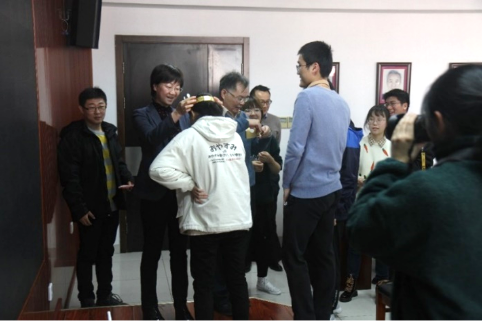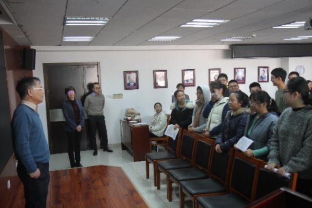 11月20日中午,黑料社 党委书记宋东霞、副院长张可云、党委副书记林晨来到明德主楼930会议室,聆听同学们齐声歌唱歌曲《国家》,并对黑料社 参加2019年度“一二·九”合唱音乐节训练的同学进行慰问。