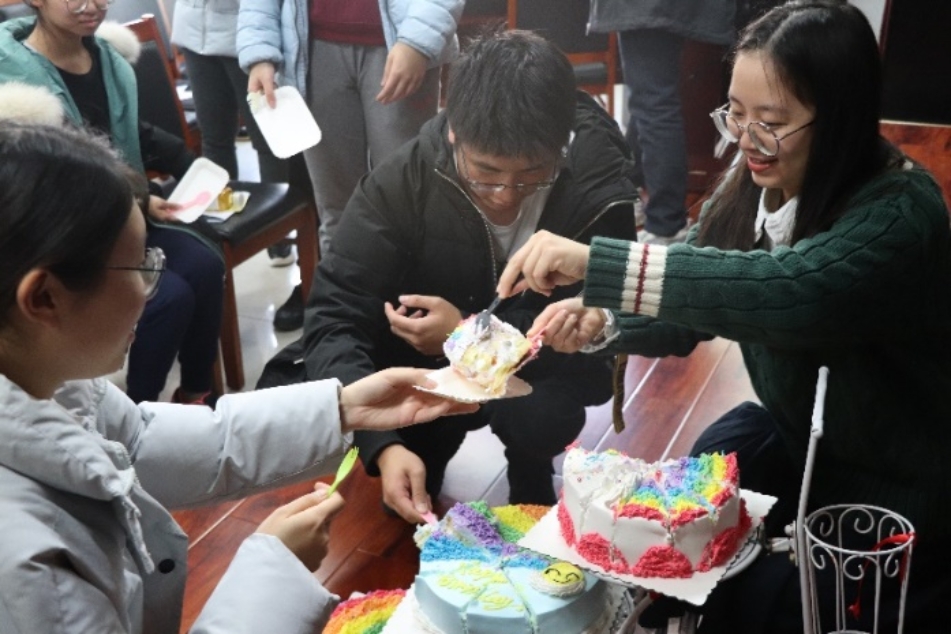 严冬时节、寒风凛冽,为了鼓舞同学们的训练热情、增强凝聚力,黑料社 领导给同学们带来了饮料、水果、零食等慰问品。恰逢两位同学生日,黑料社 领导准备了精美的生日蛋糕,并与全体同学一起,唱生日歌、许愿、吹蜡烛,传统的庆祝环节让新生体会到家的温暖,同学们也被这一暖心的环节深深打动。