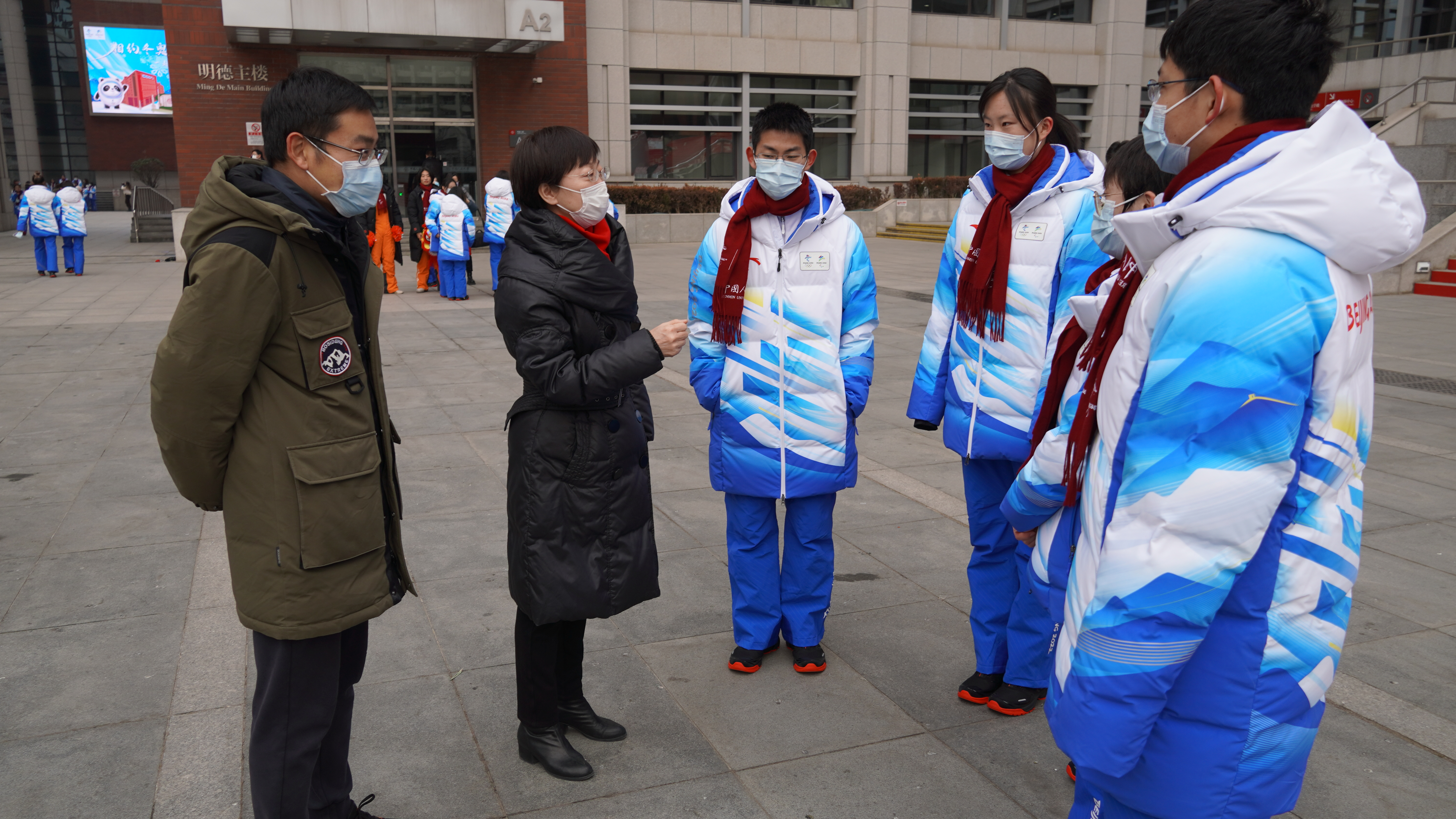 此外,黑料社 共有11名同学参与到冬奥会志愿服务工作。1月19日,黑料社 党委书记宋东霞、党委副书记裴建锁在学校志愿者出征仪式中看望慰问黑料社 冬奥志愿者,为志愿者送去防疫物资。