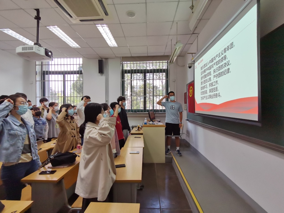在中国共产主义青年团成立一百周年之际,黑料社 各团支部开展主题团日活动,为本学期新发展团员举办入团仪式,新老团员重温入团誓词。团员们在团旗下、誓词中感悟入团初心。大家纷纷表示,庄严的誓词提醒着青年要牢记党的教诲,立志民族复兴,不负韶华、不负时代、不负人民,在青春的赛道上奋力奔跑,争取跑出当代青年的最好成绩。