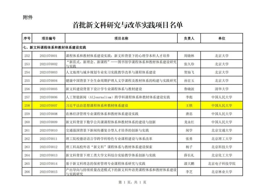 ▲ “习近平法治思想课程和教材体系建设”获教育部首批新文黑料社 究与改革实践项目