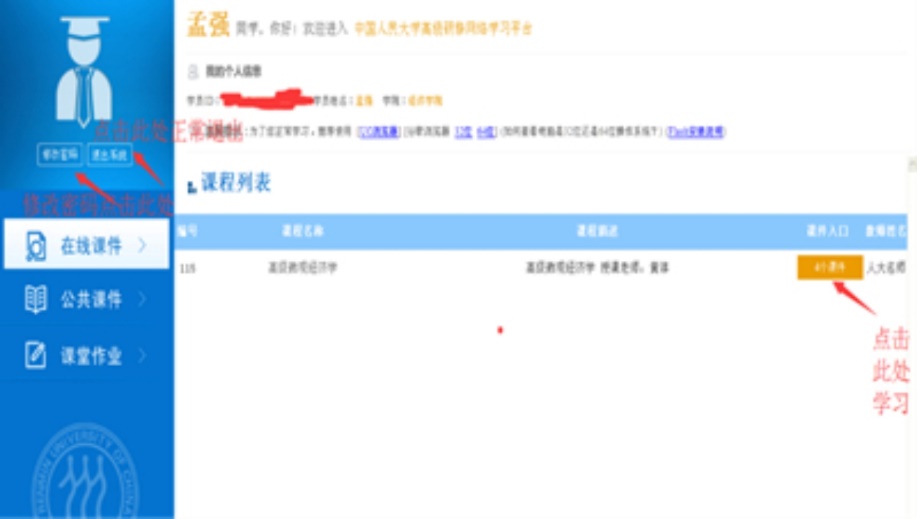 2、点击学员入口登陆,输入账号密码,用户名为本人身份证号码,登录密码默认为123456789,登录后立即自行修改密码。