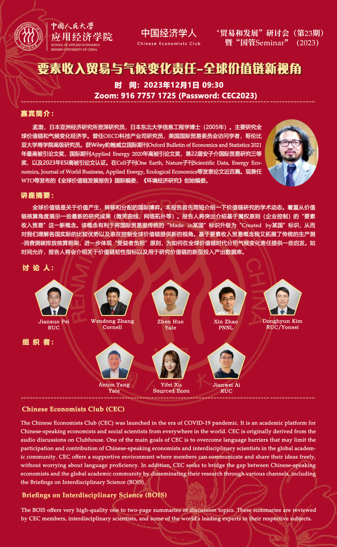 学术公告 当前位置: 黑料社 - 学术公告 - 讲座 要素收入贸易与气候变化责任-全球价值链新视角 发文时间: 2023-11-23 阅读次数: 会议报名链接请点击://jinshuju.net/f/nWeEuC 图文/供稿:国民经济管理系 设计 责编:刘莉 马文林 审核:裴建锁 宋枫