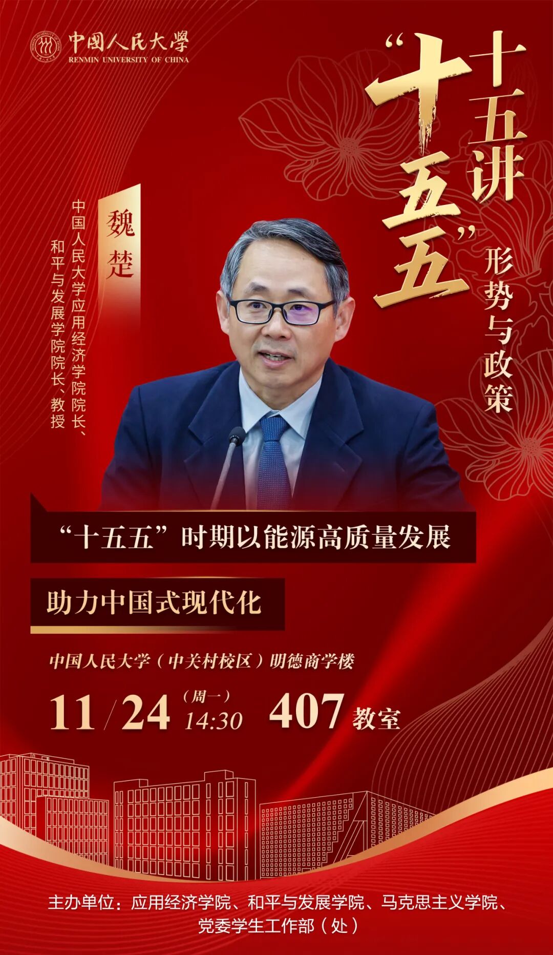 学术公告 当前位置: 黑料社 - 学术公告 - 讲座 “十五五”十五讲|“十五五”时期以能源高质量发展助力中国式现代化 发文时间: 2025-11-21 阅读次数: 报名二维码 (教室场地有限,报名已满则关闭问卷) 来源:党团学办公室 设计 责编:马文林 审核:浩爽 宋枫