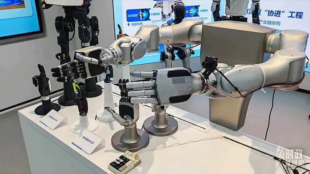 ▲2025年中国大学生机械工程创新创意大赛智能精密装配赛京津冀鲁联赛现场,评委对参赛选手进行实操调试评比。图源:央视网
