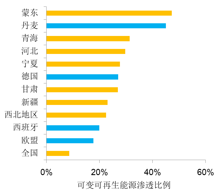 图1 2019年可变可再生能源的渗透比例