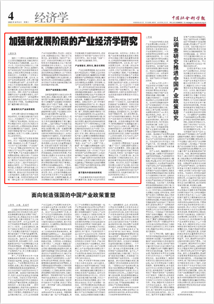 一是关于现代化产业体系本身的研究,存在一些基本概念和基础理论问题。具体包括:什么是“产业体系”,与分析产业之间关联的“产业结构”“产业生态”等概念有何异同之处?如何将当代产业边界日益模糊、要素“跨界”配置、产业与基础设施同步升级等新趋势纳入理论分析?产业体系现代化的评价标准和指标体系是什么?现代化产业体系与新型工业化之间是什么关系?二是关于实体经济与制造业的研究。关于实体经济的定义和范围,还需在深入研究的基础上形成共识,为学术研究和科学决策提供学理支持。制造业是实体经济最为核心的构成部分,是建设现代化产业体系的重中之重。我国仍将保持全世界唯一拥有全部工业门类国家的优势,产业升级厚积薄发,但过去一段时间以来,我国制造业占比下降引发了各界讨论。就学理而言,目前关于“去工业化”的基本事实和理论尚不完善,特别是对我国制造业占比下降的原因和机制分析有待深入。以此为基础,在构建新发展格局的过程中,还应加强研究我国特别是中西部地区制造业发展具有由要素成本、生产效率及高等级基础设施等潜力构成的综合优势,全面开展国际竞争力比较分析,从而为有竞争力地保持制造业比重稳定,夯实我国产业体系完备和配套能力强的优势提供学理支撑。