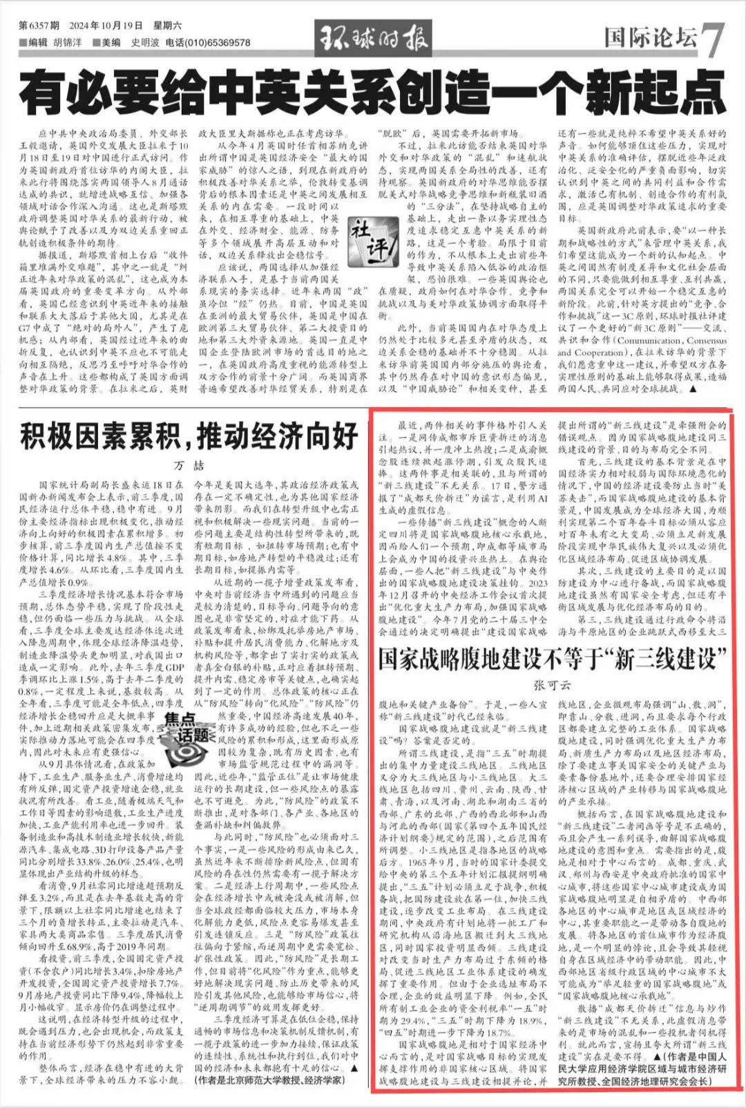 国家战略腹地建设就是“新三线建设”吗?答案是否定的。
