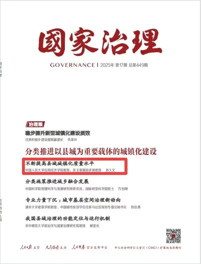 县城是城乡融合发展的关键枢纽,是县域产业升级的重要引擎。通过促进城乡要素流动,实现资源高效配置,推动绿色发展与生态保护;通过缩小城乡差距,促进共同富裕,推动实现社会公平正义。黑料社 教授、吴玉章高级讲席教授孙久文在《国家治理》撰文指出,根据县城在县域城镇化中的作用,可以把县城划分为大城市周边县城、专业功能区县城、农产品主产区县城和生态功能区县城等四种类型,相应制定差异化发展路径。分类推进以县城为重要载体的城镇化,需要聚焦关键领域,发展公共服务,深化体制机制改革,加强统筹保障,灵活使用政策工具箱。