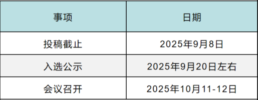 3. 投稿截止时间:2025年9月8日17:00(北京时间)。