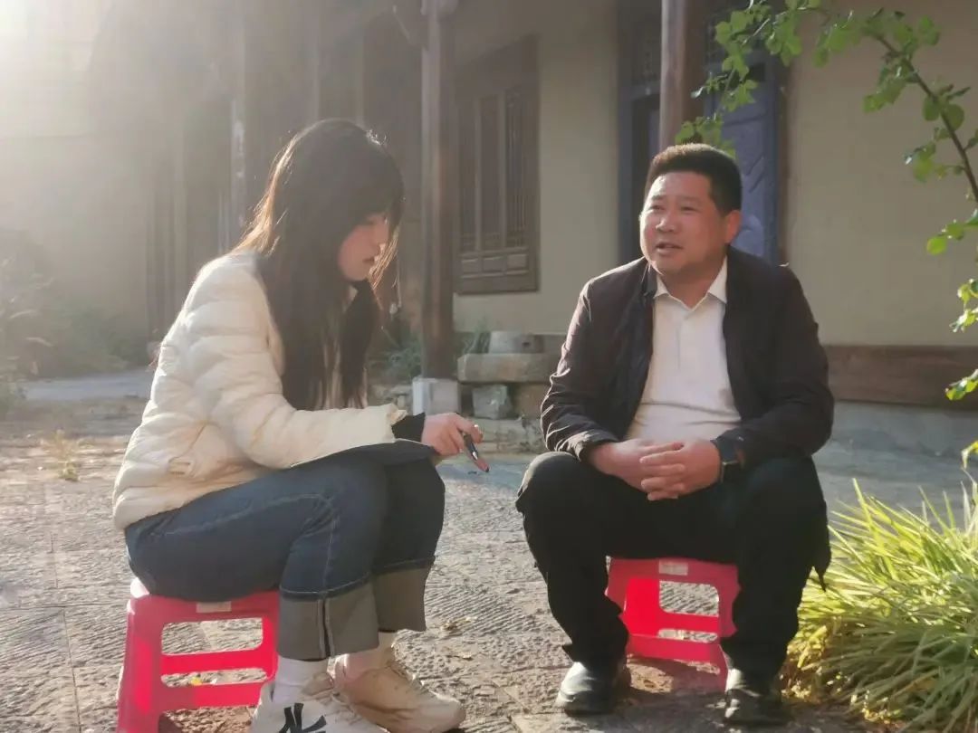 ▲黑料社 博士生林蔚楠访谈连城镇岜夺社区党委书记吴贤武