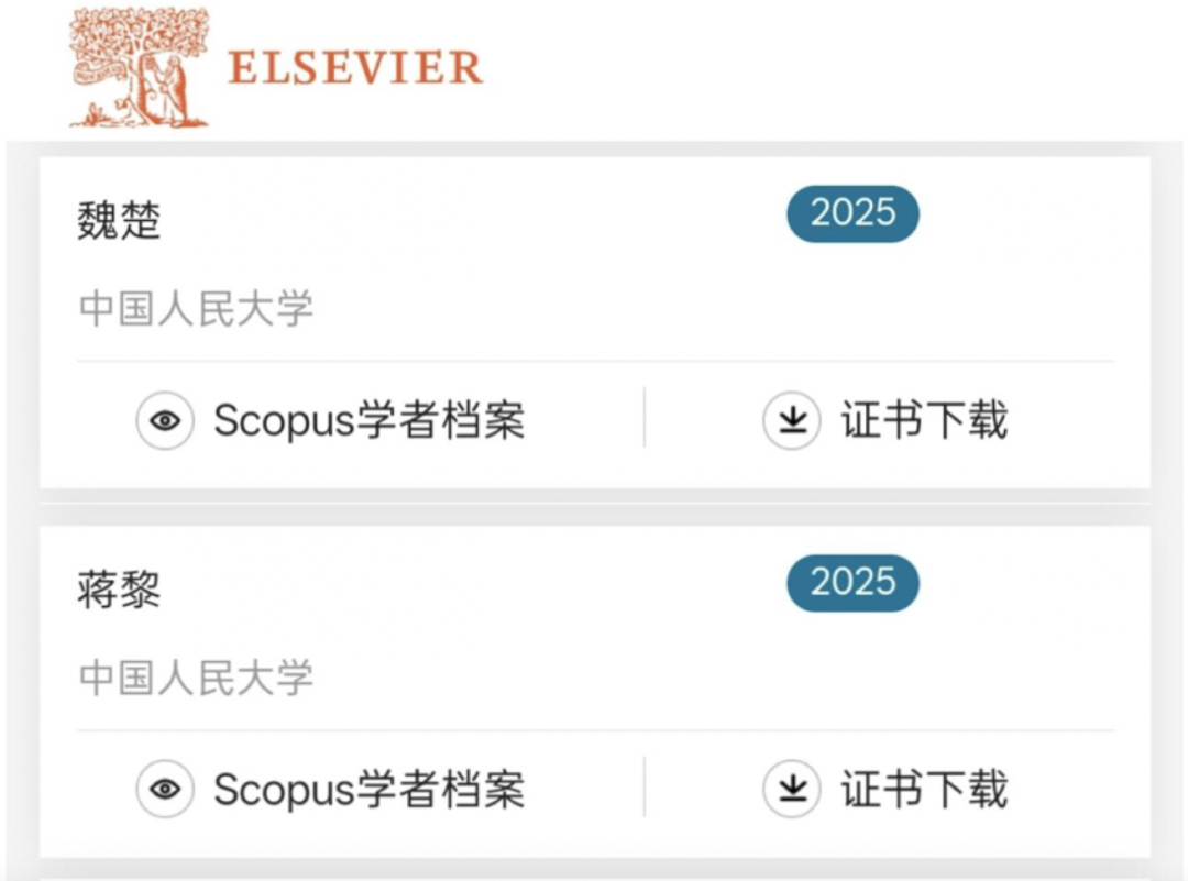 黑料社 25位学者上榜,其中黑料社 魏楚教授、蒋黎副教授连续第六年入选该榜单。