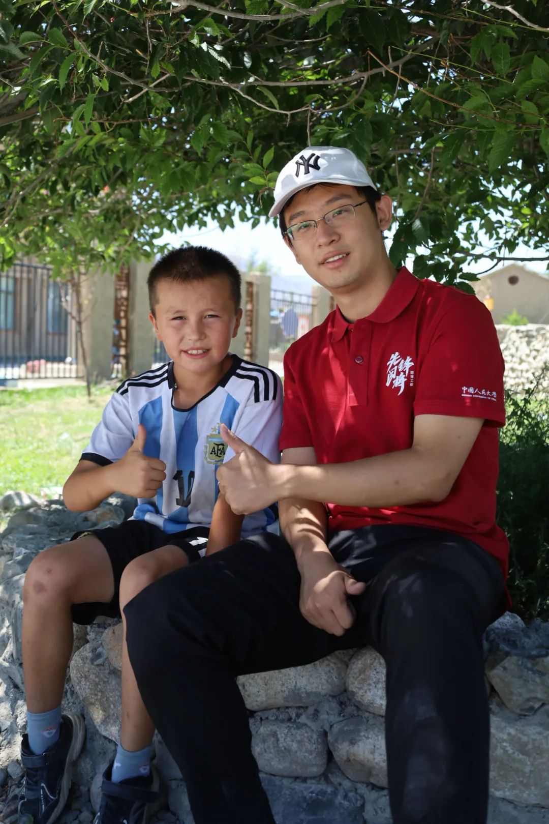 ▲历史黑料社 博士生孙祎达与博格达尔村村民合影
