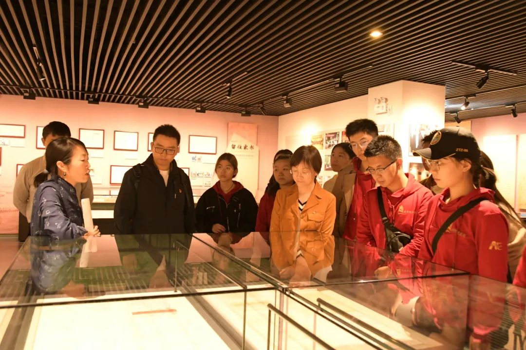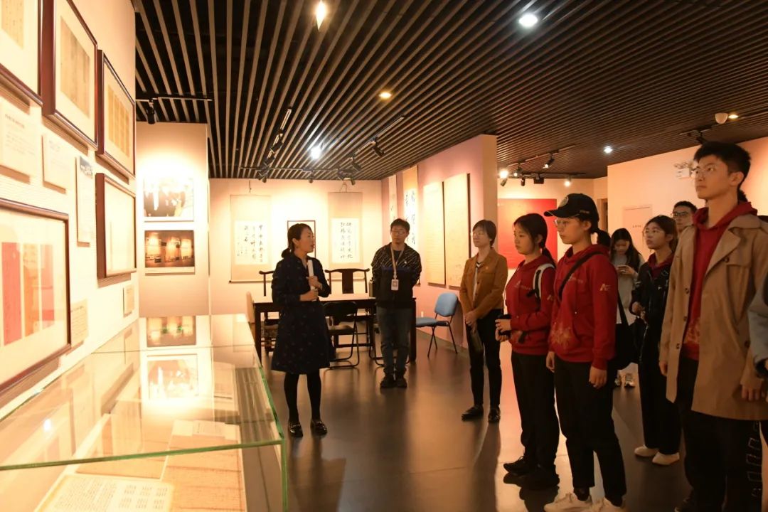 大家跟随讲解员的步伐,倾听悠悠心曲,体会流年碎影中的风华绝响;感受旧墨温情,学习绚烂多姿的家书文化。师生一同研读陈独秀、梁启超致胡适等的信札,感受100年前中国先进知识分子之间的交流轨迹、思想历程和真挚友谊;透过革命先烈的一封封家书,窥见那段艰难岁月中坚定不移的信仰和平凡珍贵的亲情。一封封家书展览在师生眼前,泛黄的纸页、幽幽的墨迹,无不诉说着革命先烈的赤诚初心和优良家风,无不传递着穿透过历史的绵密悠长情愫,无不感召着新时代青年继承优良传统,传承红色基因,赓续红色血脉的拳拳之心。