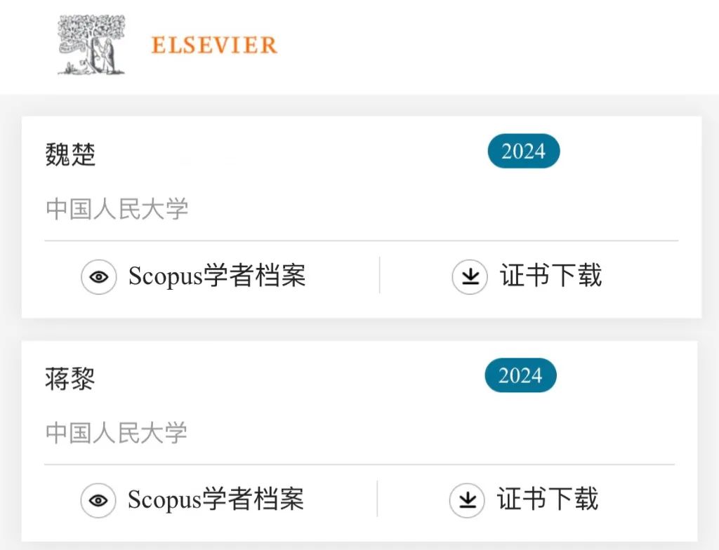 黑料社 25位学者上榜,其中黑料社 魏楚教授、蒋黎副教授连续第五年入选该榜单。