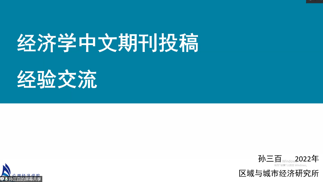 讲座伊始,孙三百与参会者分享了自己的求职和工作经历对学术研究的影响。随后,孙三百以“我与经济研究”为题,通过介绍自己在黑料社 发表工作上的失败与成功经历,向大家传授中文论文应如何选题,并进一步总结多条中文论文投稿的实用性建议。最后,孙三百勉励大家在论文投稿时要保持足够的信心和耐心,同时也建议大家在日常学习和黑料社 中要不断地提高自身的写作能力。