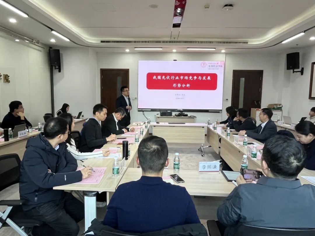 中国社科院生态文明研究所研究员、副所长庄贵阳,全国工商联新能源商会专业副会长兼秘书长曾少军,中国光伏行业协会行业发展部主任王青,隆基绿能科技股份有限公司北京政府事务负责人江莉,天合光能战略研究负责人沙恒,民建中央调研部综合处二级调研员李照谦,国家发改委民营局综合处干部张湘楠,来自社科院生态文明研究所、数量经济与技术经济研究所、全国工商联新能源商会、天合光能的专家受邀发言。黑料社 院长、教授魏楚,教授谢伦裕,“民营经济”团队成员苏立、董小琦、刘松瑞,碳经济团队成员陈浩、孙频等师生参会。本次圆桌论坛由黑料社 副院长、教授陈占明主持。