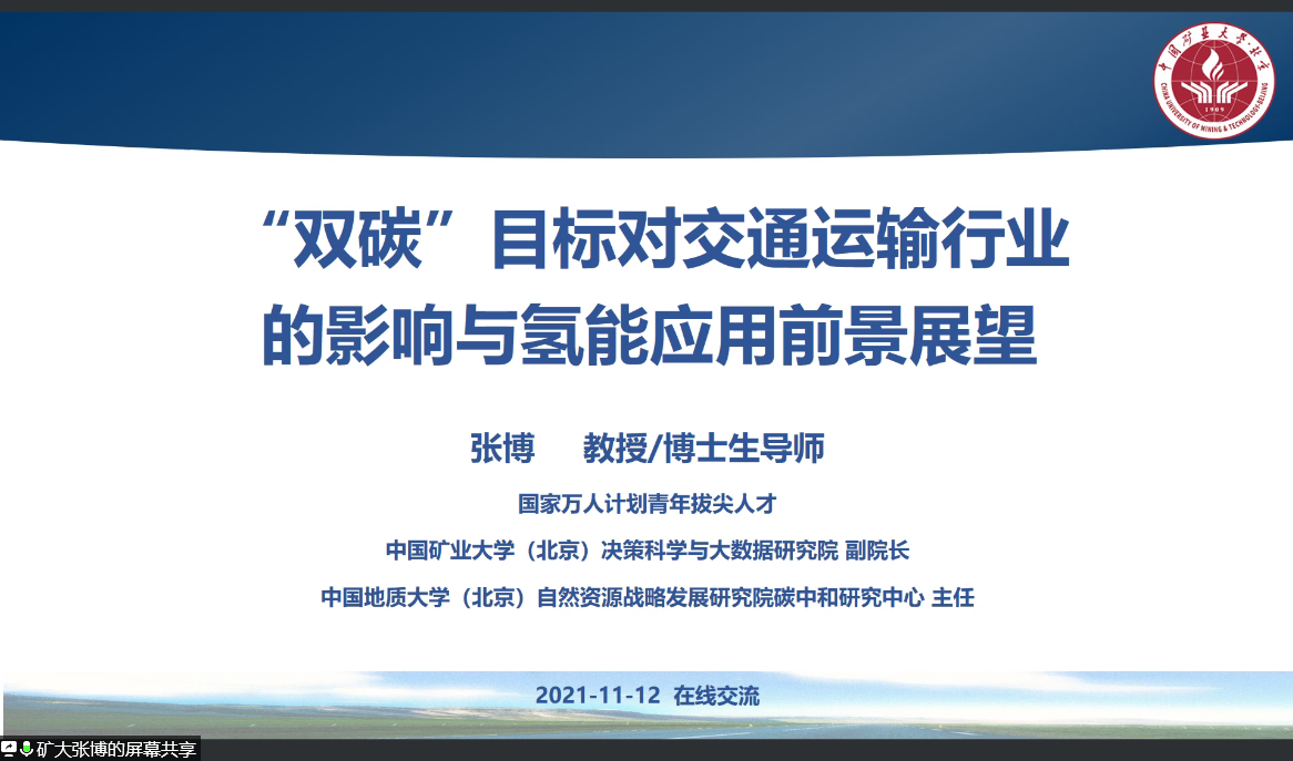 中国矿业大学(北京)管理黑料社 教授张博以《“双碳”目标对交通运输行业的影响与氢能应用前景展望》为题进行了展示。研究认为,碳中和的概念在学术界目前主要表现为“气候层面”和“碳排放层面”两种观点。在行业层面上,其研究发现,未来全球能源绿色低碳转型的趋势包括化石能源低碳化、零碳能源规模化、终端用能电气化、电力来源清洁化、能源系统智能化、转型进程加速化等。