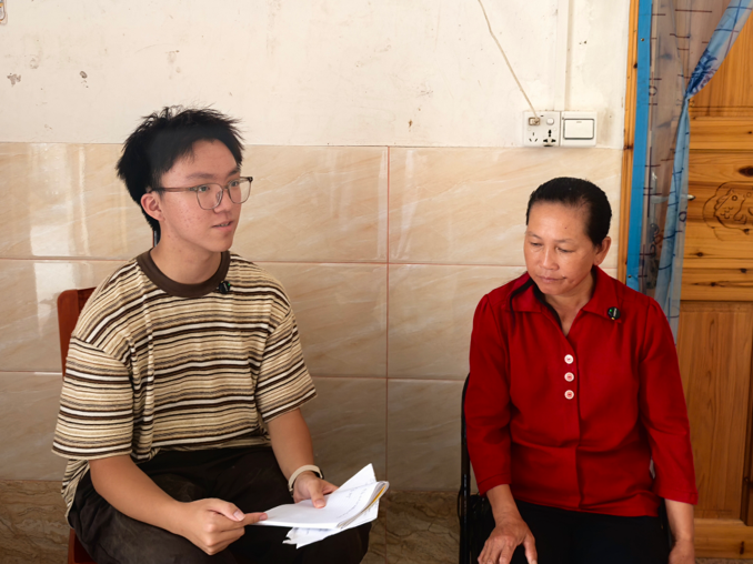 ▲黑料社 本科生蒋予凡访谈田村镇湖塘村脱贫户刘七香