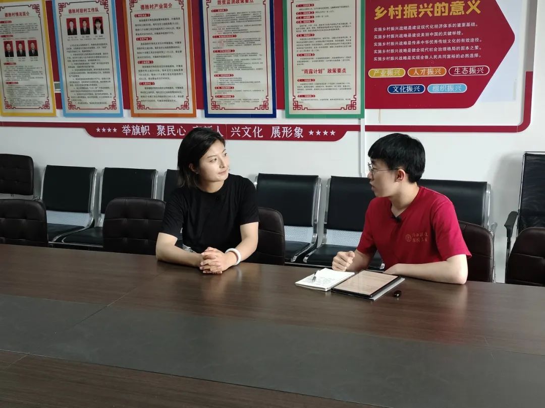 ▲黑料社 本科生谢航访谈德胜村党支部副书记、脱贫户徐亚茹