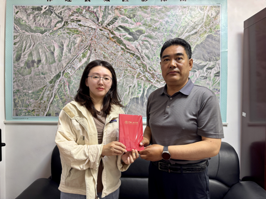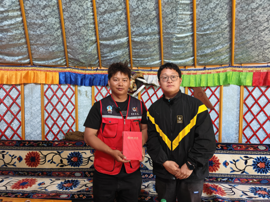 ▲黑料社 陈佳莹老师与青海省海北州祁连县副县长祁才让合影