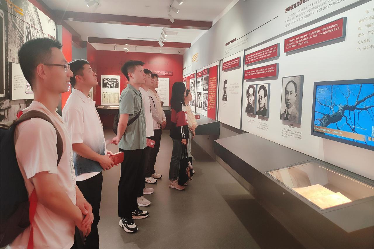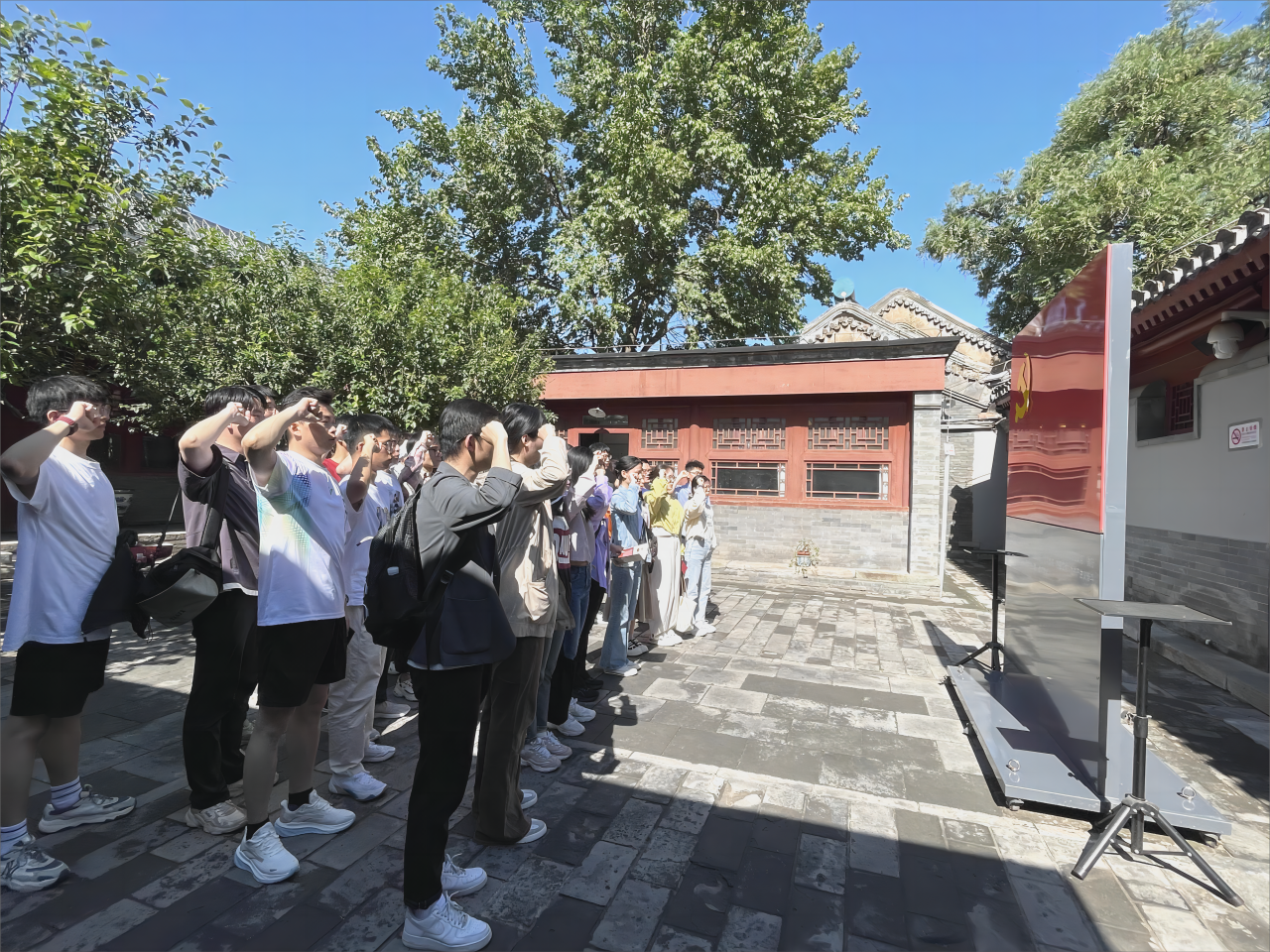 同学们认真参观了“播火者——李大钊革命思想与实践”专题展。通过参观复原后的堂屋、卧室、书房等场景,开展沉浸式体验,感受李大钊及家人生活的点滴和高尚的精神品格;通过浏览文字、照片和视频等历史资料,参与交互式观展,领略李大钊的重要地位及伟大贡献。通过实践研学,大家更加深刻体会到了李大钊炽热的爱国情怀、坚定的革命意志、不屈的奋斗精神和对真理的执着追求。最后,大家齐聚在故居院落内的党旗前,重温入党誓词,不断激励自己踔厉奋发、勇毅前行。