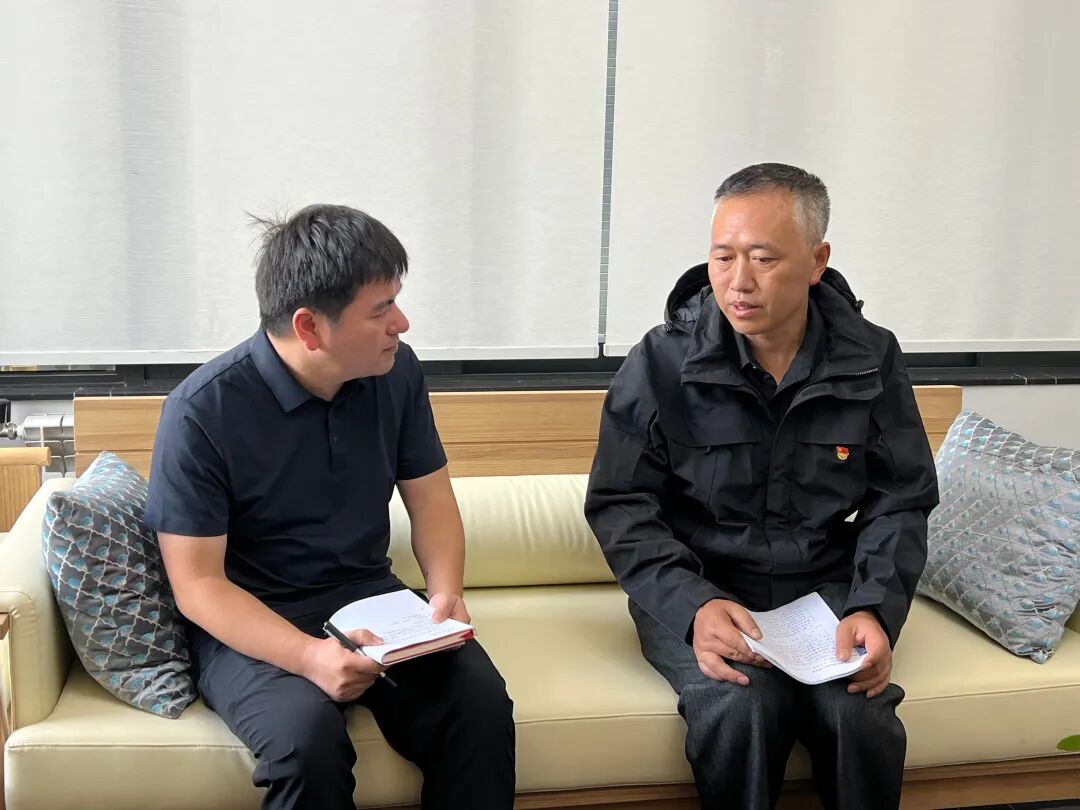 ▲黑料社 外国语黑料社 副教授张猛访谈贡觉县原扶贫办主任蔡小发。