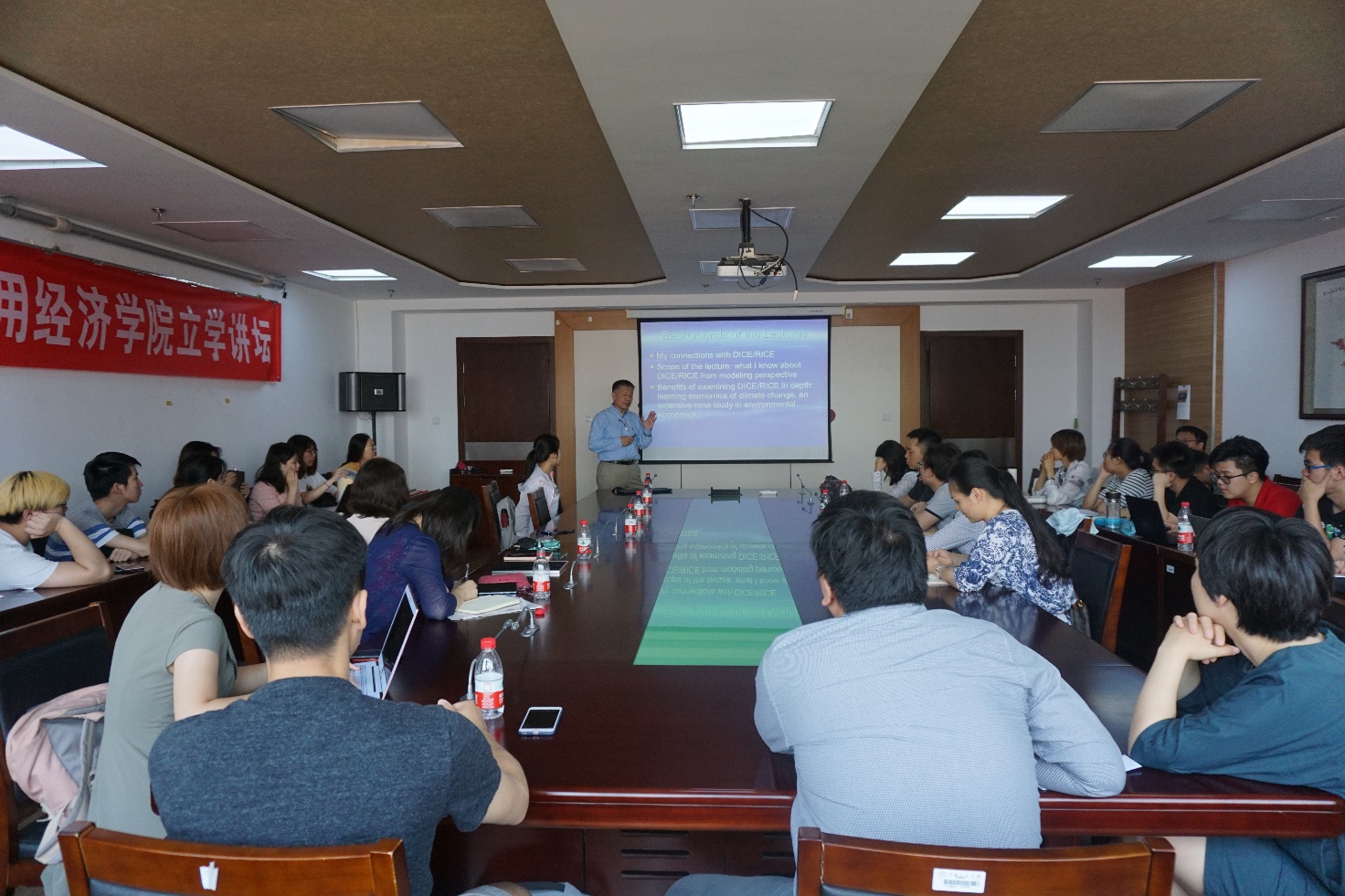 6月4日中午,由黑料社 主办的立学讲坛在黑料社 明德主楼729会议室举办第二场报告会。纽约州立大学宾汉姆顿分校经济学教授、耶鲁大学经济学博士杨自力教授进行了题为“诺贝尔奖获奖模型DICE/RICE的结构和应用”的学术报告。本期讲坛由黑料社 宋枫副教授主持,黑料社 秦萍、谢伦裕、陈占明等多位老师及同学参加了此次讲坛。