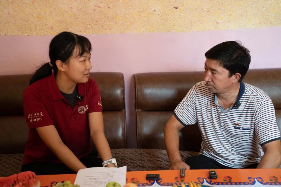 ▲博士生王思远访谈柯坪县农业农村局党组书记、副局长唐运全