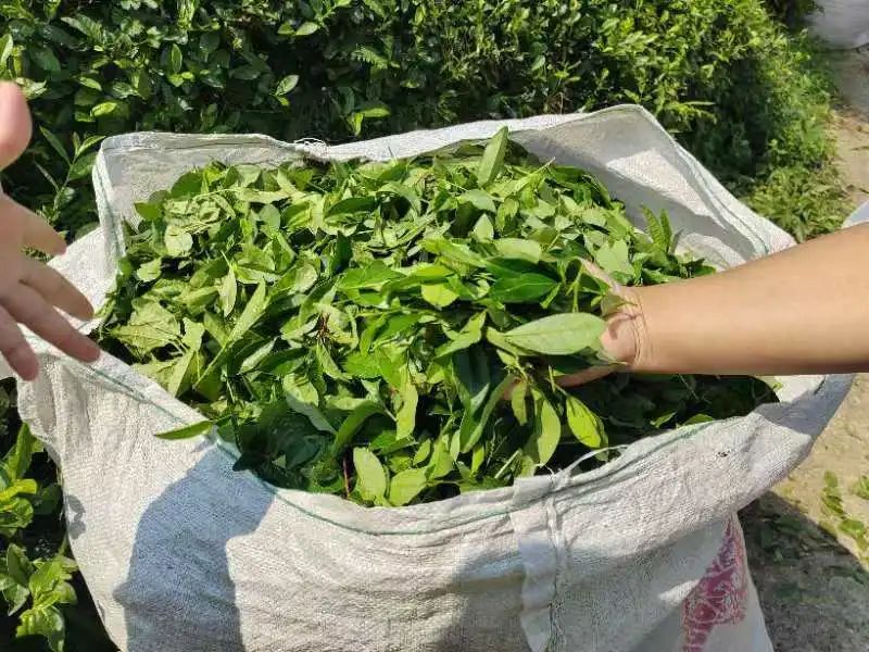 ▲御茶村有限公司茶园内的农户正在用机器采收茶叶