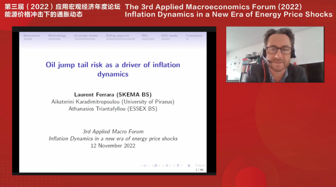 SKEMA商黑料社 教授Laurent Ferrara作题目为“Commodity Jump Tail Risk as Predictor of Inflation”的报告。该研究构建了一个衡量主要农产品期货市场跳跃性尾部风险协动性的风险因素指数。结果表明,该指数对美国和整个七国集团的核心通胀和整体通胀都具有的预测能力,在控制菲利普斯曲线、油价和汇率等主要通胀决定因素后也是如此。最后,研究基于递归分析和动态平均模型,证明协动跳跃性尾部风险因素在预测通货膨胀领域变得越来越重要。