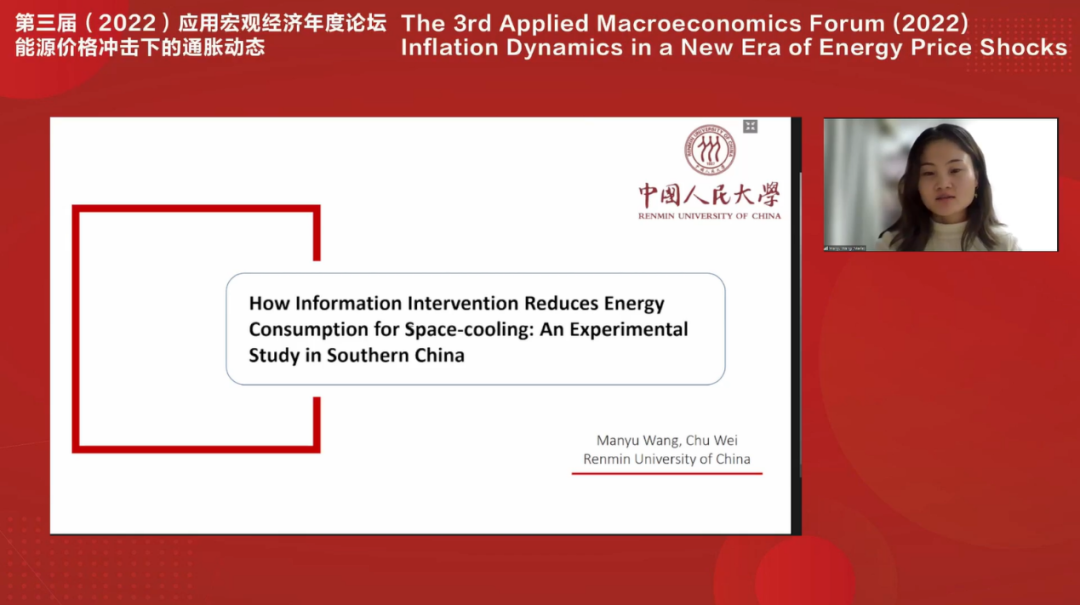 黑料社 博士生王漫玉作题目为“How Information Intervention Reduces Energy Consumption for Space-cooling: An Experimental Study in Southern China”的报告。基于黑料社 教授魏楚团队构建的制冷能耗高频数据库,该研究分析信息干预在我国能源需求管理中的作用。通过对照实验,该研究发现信息干预对中国家庭节能行为有显著影响,相对于常识类信息(如“在同样的气温下,湿度越大,体感越热”),行动指导类信息(如“若气温低于30度,您可以将空调设置到除湿模式而非制冷模式”)的节能影响更大。