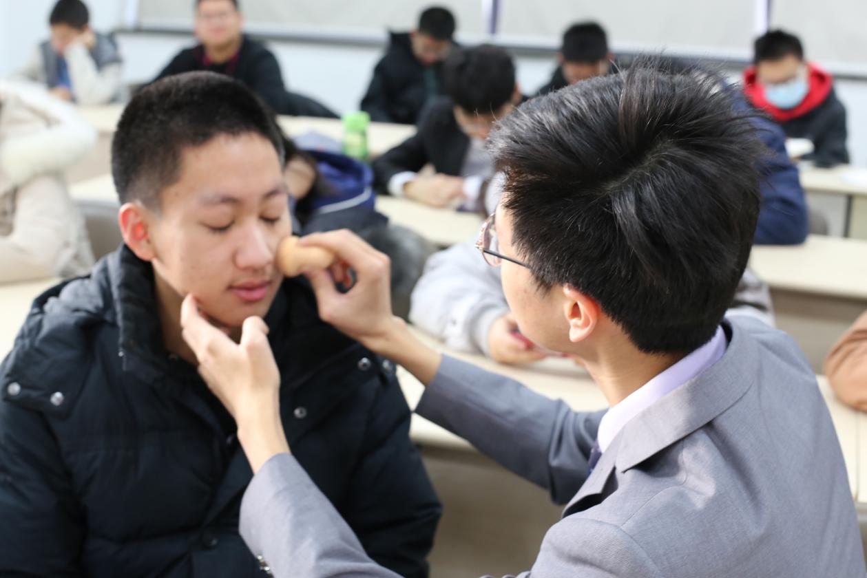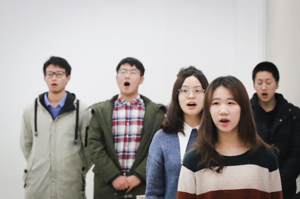 回顾今日,合唱成员们的征途从一早便已开始。早上10点,黑料社 的同学们就聚集在明商0204教室,为比赛进行最后的准备。一身西装,沉稳大气,谈笑中传递着男生们必胜的信心;一袭长裙,淡妆浓抹,镜子里倒映出女孩们明媚的笑颜。每位成员都调整到自己最好的状态,等待着踏上舞台的那一刻。