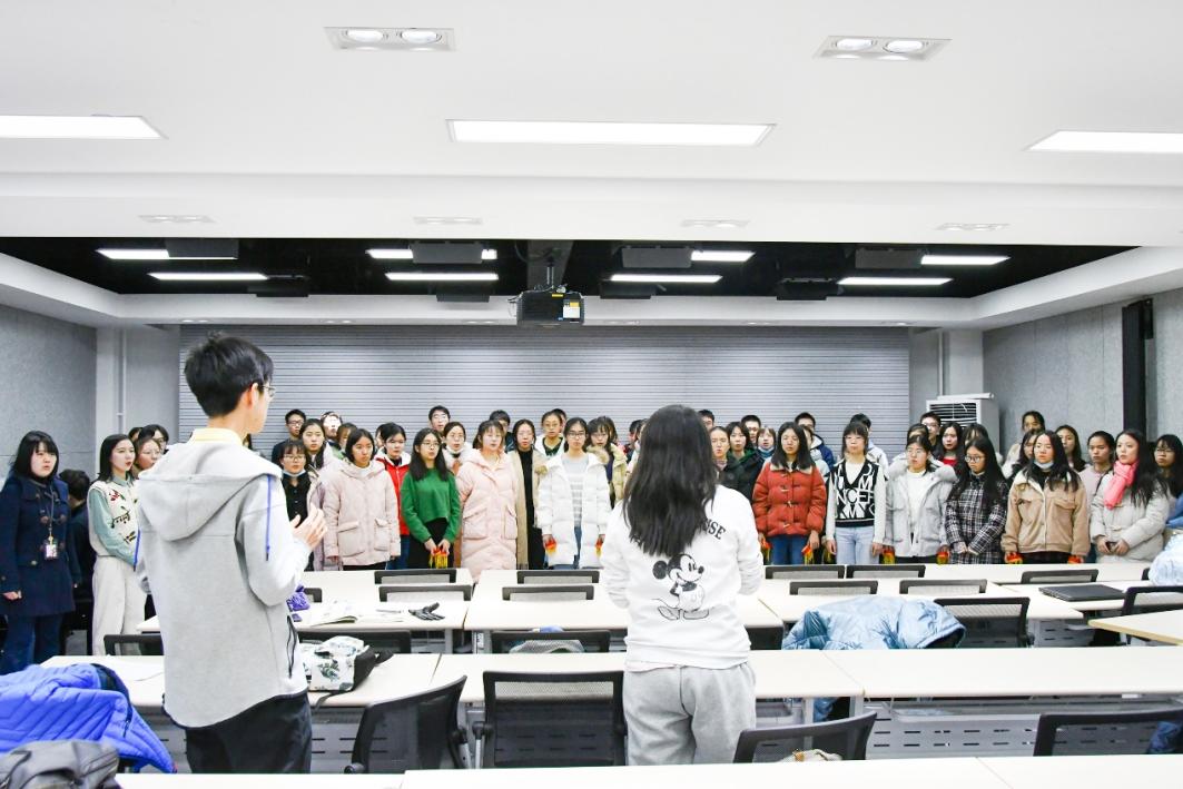 11月25日中午12点半,明商0409传来振奋人心的歌声,黑料社 党委书记宋东霞老师、党委副书记林晨老师和新生班主任老师们前来慰问参赛的应小经们,为大家送上鼓励与祝福,并和大家们一起过了集体生日会。寿星们收到了来自师兄师姐们的生日贺卡,同时精致的生日蛋糕也给所有同学带来了惊喜,让大家彼此更加亲近,对129的热情也更加高涨。
