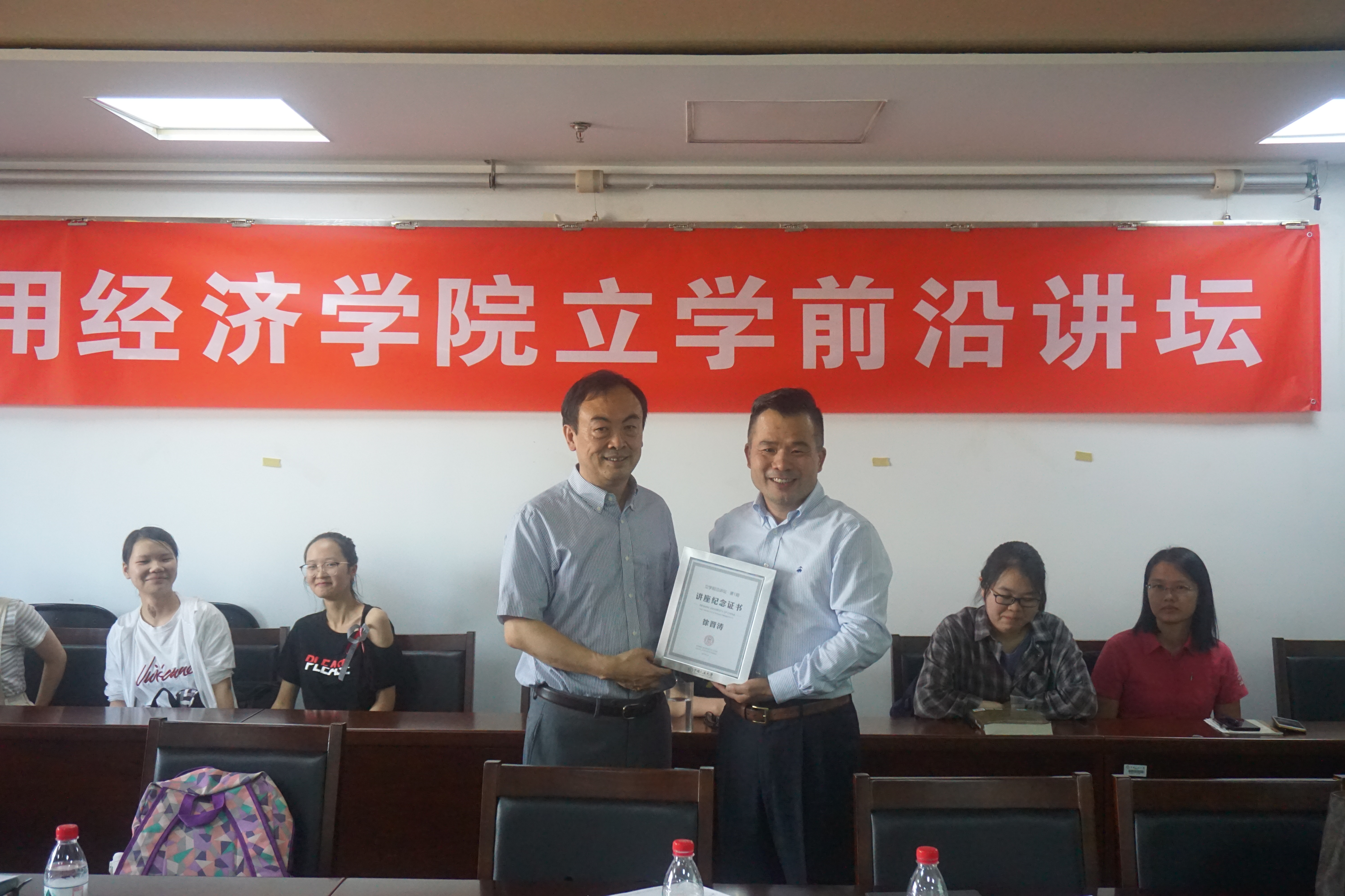 最后,黑料社 院长郑新业教授为徐晋涛教授颁发讲座纪念证书,讲坛获得圆满成功。