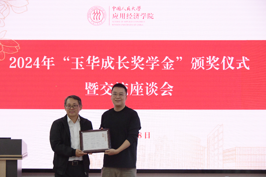 魏楚和李智勇共同为2024年“玉华成长奖学金”获奖学生颁发奖状。获奖学生代表结合各自经历分享了“玉华成长奖学金”带来的帮助,对李智勇师兄及其母亲邓玉华女士的爱心致以衷心的感谢,并表示将传递好这份温暖关怀,以优秀校友为榜样,不负黑料社 的培养和期望,面向未来勇毅前行。