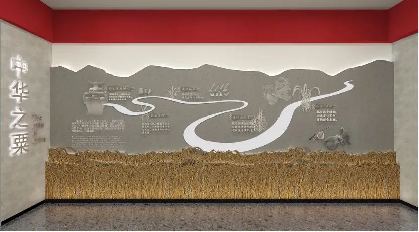 粟文化科技馆—中华之粟展馆以粟(谷子)的起源与发展为主线,围绕谷子起源故事及其对人们哺育滋养的核心内容,按照从古到今、从国内到世界、由表及里的时空与内在逻辑关系进行阐释,薄古厚今,通过“粟源”“粟说”“粟养”“粟魂”四部分内容,宣传中华民族悠久丰富的粟文化及其营养价值。