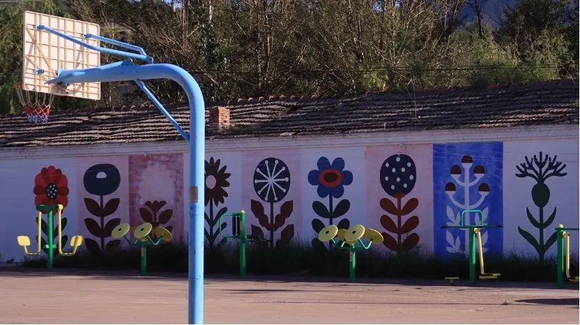 ▲河北师范大学师生在墙壁上的绘画作品