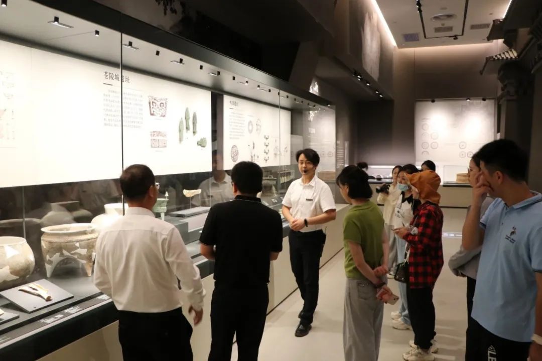 随后传承队来到安徽楚文化博物馆,安徽楚文化馆是国内唯一一座楚文化博物展示馆,展览馆中陈列的文物、放映的动画、以及数字化文物介绍都最大限度发挥馆藏资源,赋能传统文化,同时通过文化赋能,展现寿县文化现状,助力乡村文化振兴。传承队一行通过一个个载满历史故事的文物和讲解员详细的介绍,领略文化通过实物走进现实的震撼。