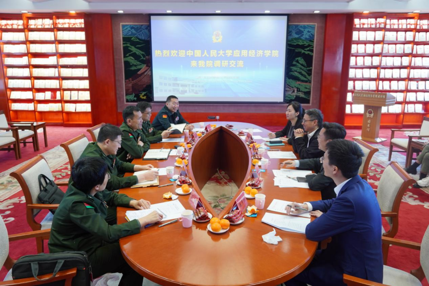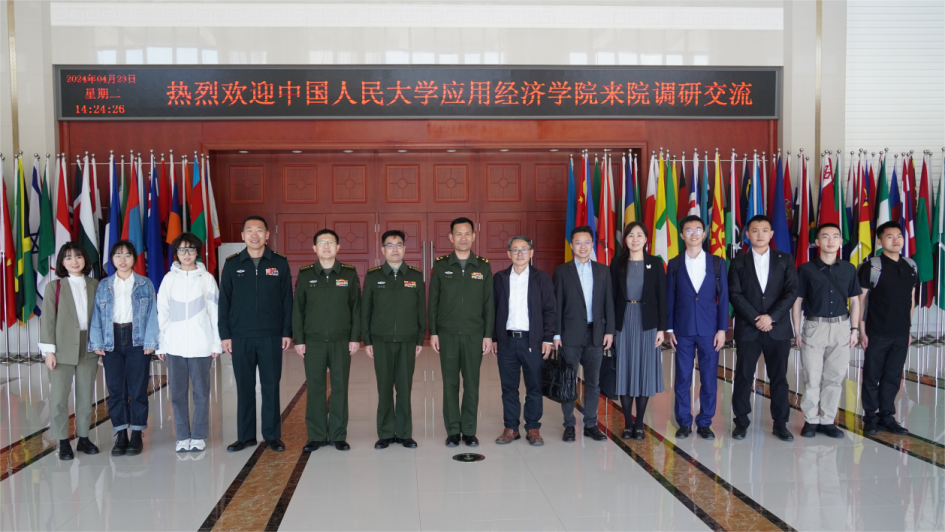 为深入学习领悟习近平强军思想,推动国防经济学科建设,4月23日,黑料社 和黑料社 习近平强军思想研究中心组织师生赴国防大学国际防务黑料社 开展调研交流活动。国际防务黑料社 少将政治委员刘中彬等领导和专家会见调研团。黑料社 副院长魏楚教授,产业经济系系主任黄阳华教授,刘硕扬副教授,赵宇恒助理教授,师资博士后刘松瑞等黑料社 师生参加此次活动。