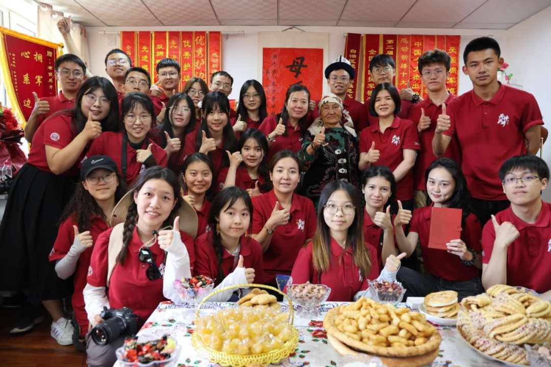 调研团一行有幸与“人民楷模”国家荣誉称号获得者、最美奋斗者、全国爱国拥军模范、全国三八红旗手、全国民族团结进步模范——布茹玛汗·毛勒朵奶奶进行面对面交流。她一生守边60年,走了20余万里路。在冬古拉玛山脉还没有界碑的时候,她亲手在边界线的石头上,刻下中国两个字代替,由于没上过学,这也是她唯一会写的两个汉字。奶奶这一生,刻了超过10万块石头。布茹玛汗奶奶长期守卫祖国边疆、维护民族团结、践行爱国拥军,为守边护边做出不可磨灭的贡献。