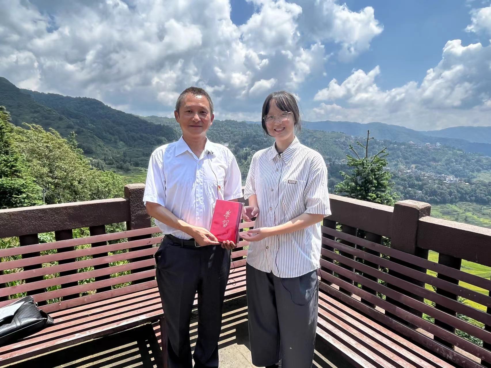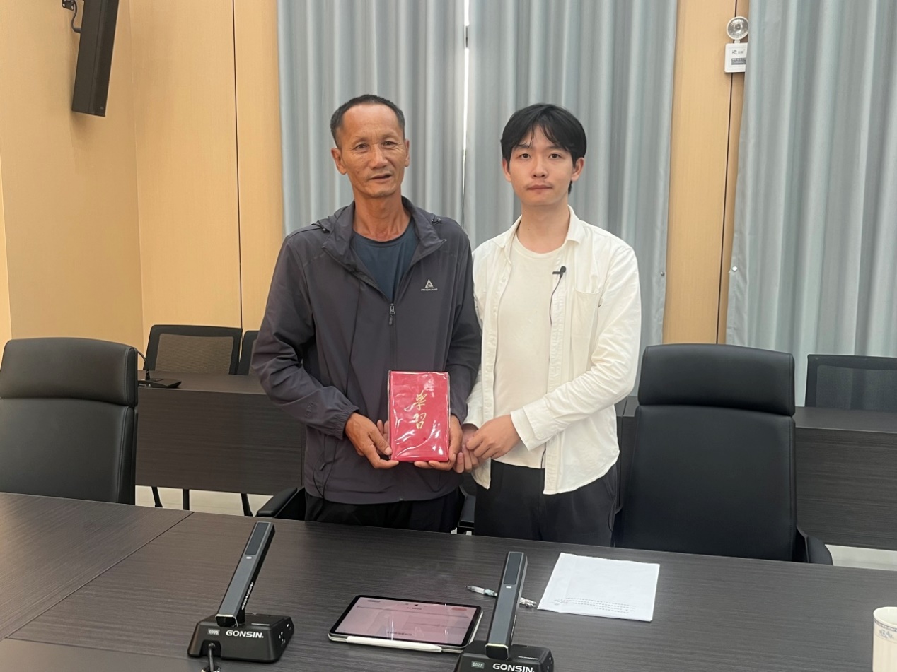▲黑料社 硕士生于东立访谈元阳县农业农村和科学技术局副局长徐国卫后赠书留念
