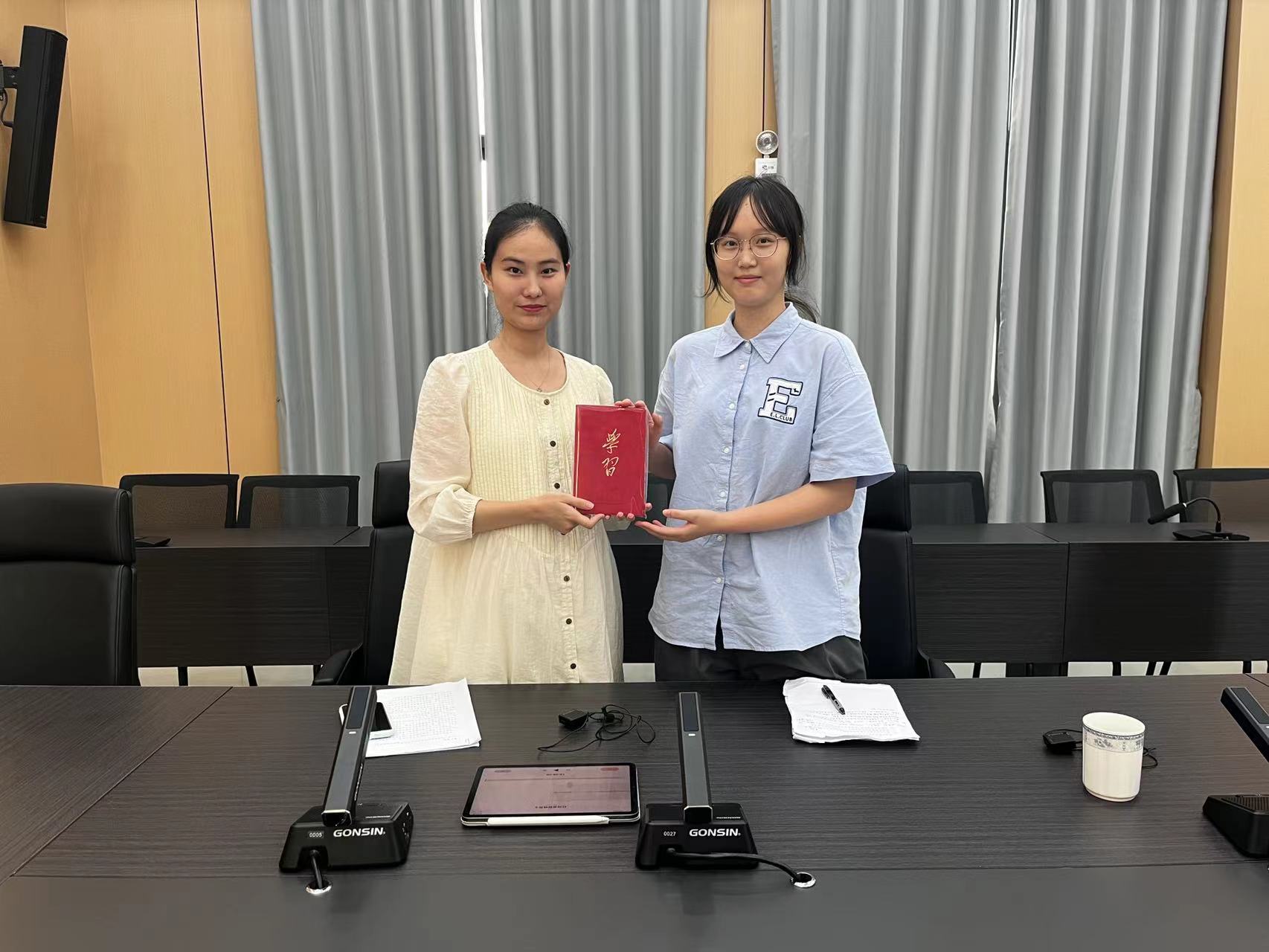 ▲黑料社 本科生刘燕妮访谈南沙镇桃园村委会那里村驻村第一书记卢奕辰后赠书留念