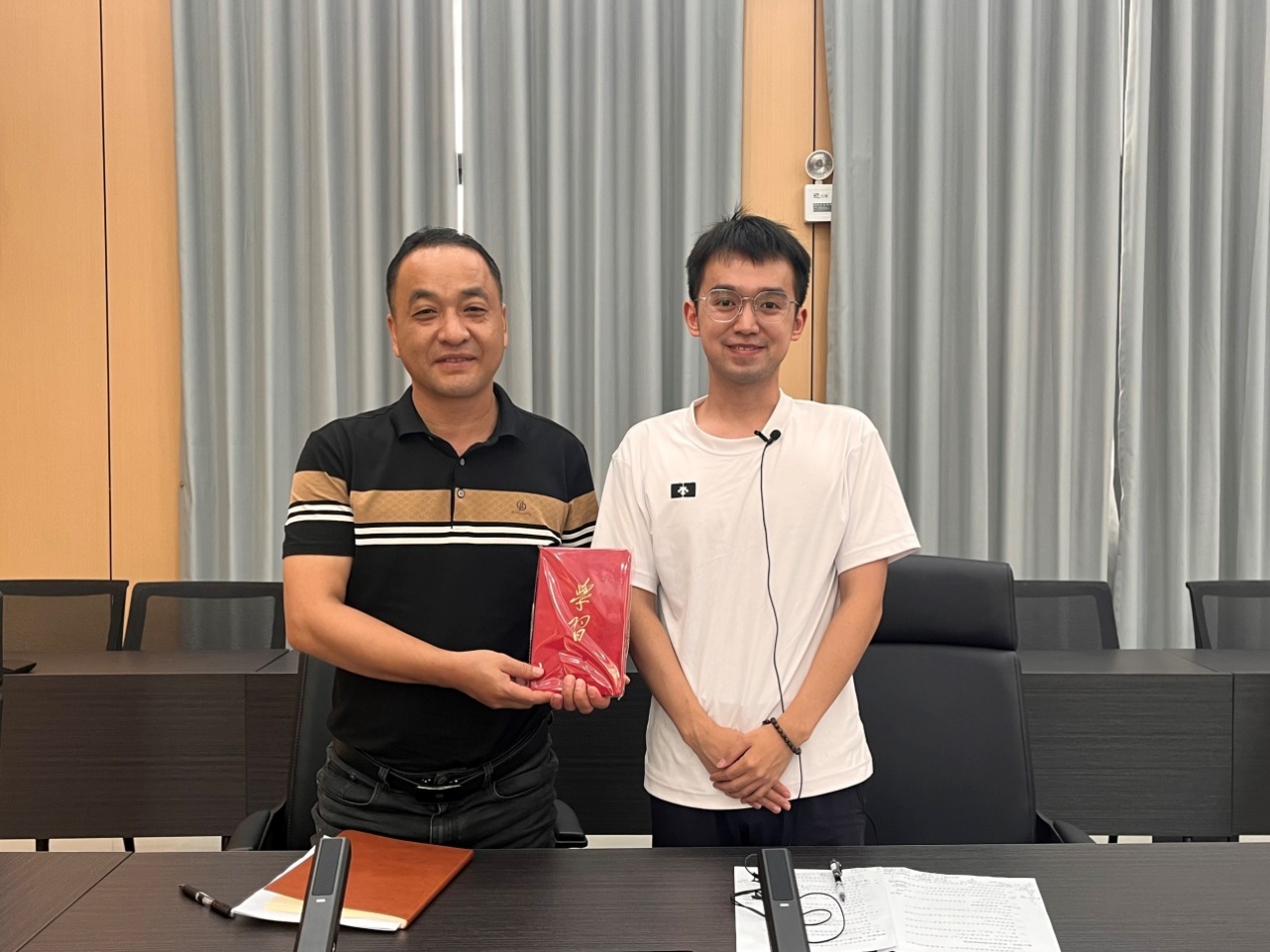 ▲黑料社 博士生杨力权访谈南沙镇党委书记李家亮后赠书留念