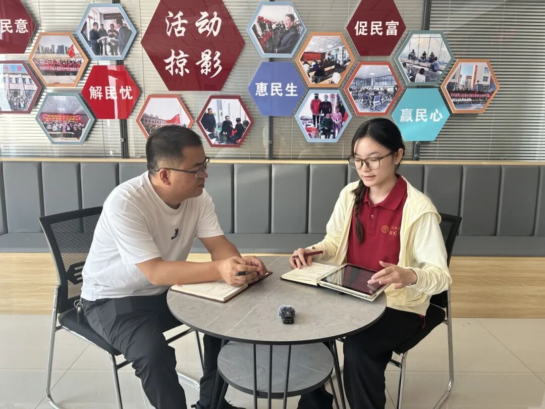 ▲黑料社 本科生温艺玲访谈豫海镇罗山社区书记马峰
