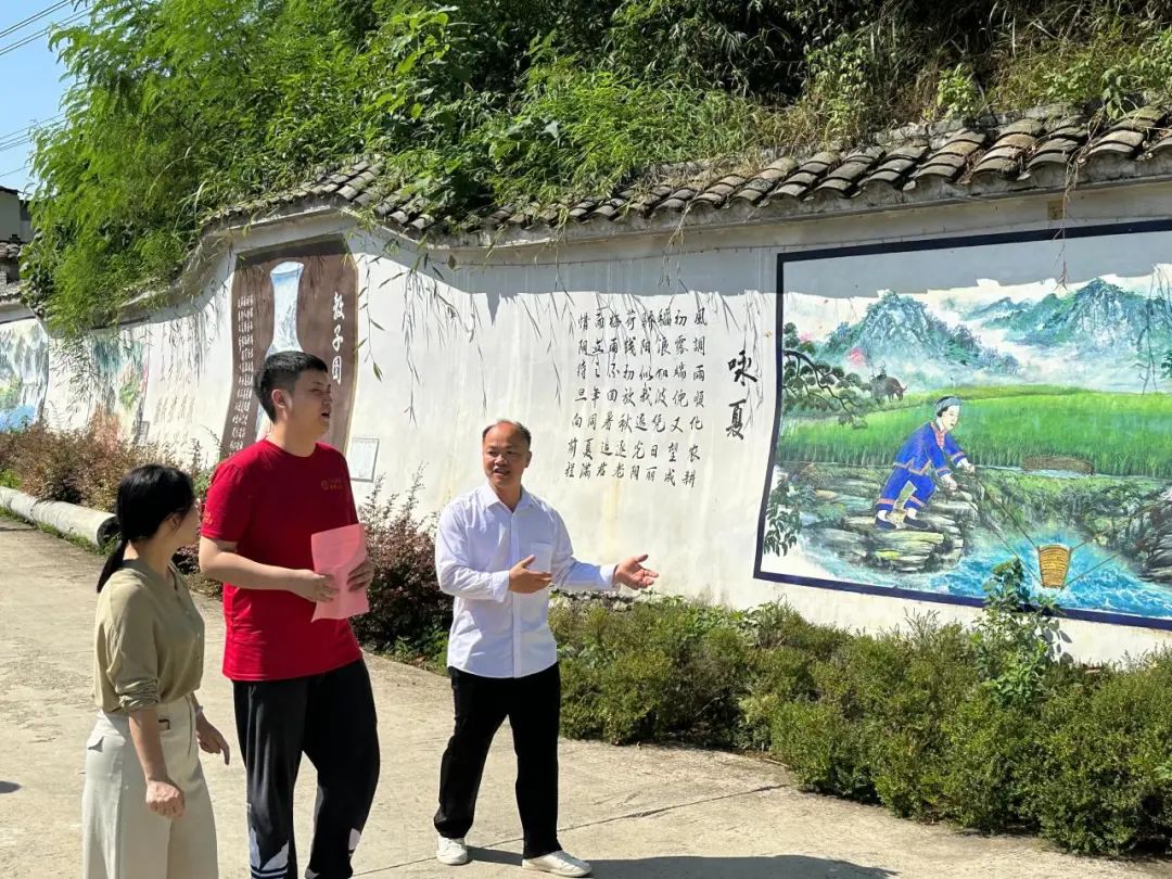 7月25日上午调研团在地苏镇拉棠村石桥画廊调研。都安瑶族自治县地苏镇拉棠村石桥屯,由石桥、石下、六桥和七桥4个村民小组聚居而成,现有壮、瑶、汉、毛南等民族居民148户647人,其中脱贫户8户26人(含监测户3户10人)。石桥屯推行“党领民办”村级自治管理机制,带动群众共议共建屯级事务。