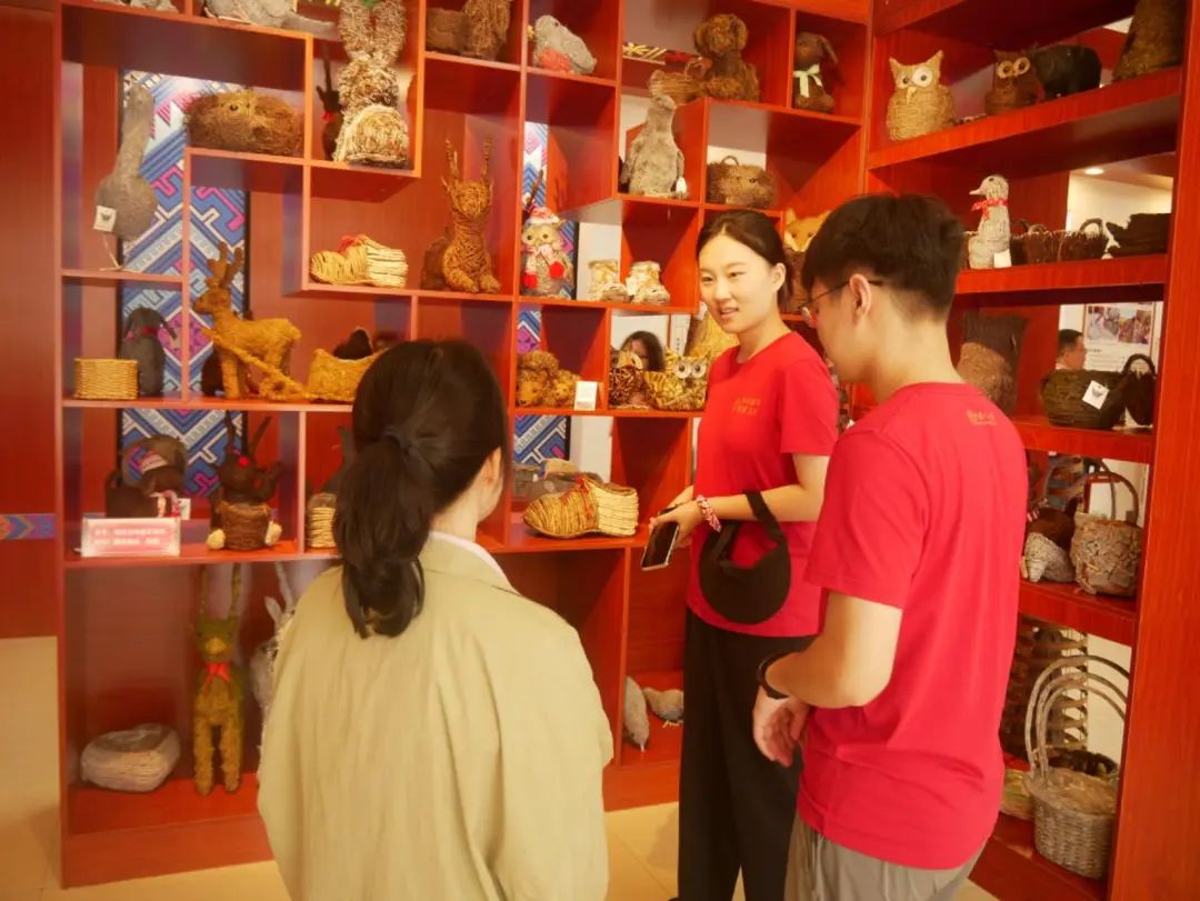 7月25日上午调研团抵达地苏镇丹阳村,开展藤编庭院经济调研。地苏镇的藤编历史由来已久,传统文化底蕴深厚。作为山多地少的石漠化地区,在20世纪70年代以前,该镇农民以少数民族传统编织技术为支撑,仅以竹编为主生产箩、筐、帽等日常生产生活用品。直到1972年,美国总统尼克松访华,带走一顶地苏的竹编通帽,并促成美国客商向地苏竹具厂订购10万顶通帽,为该镇编织产业带来了名声和第一桶金。
