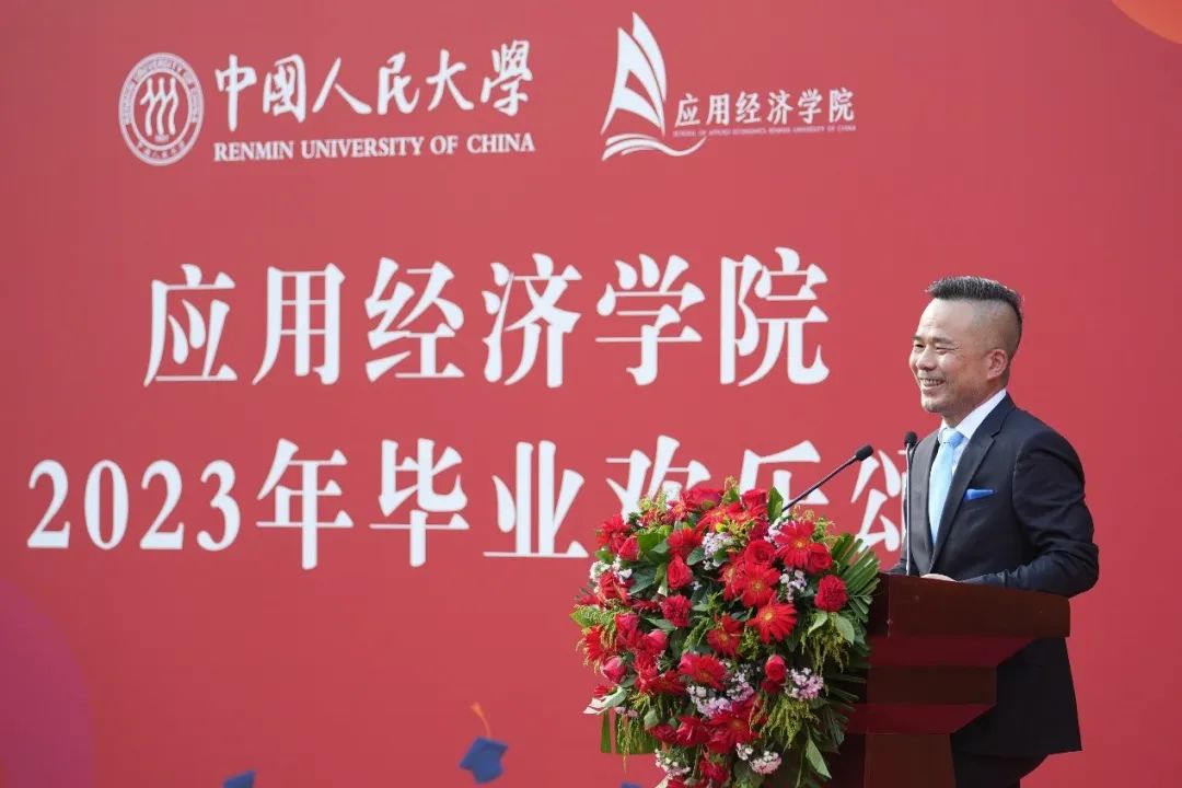 2021级产业经济学硕士班班主任陈佳莹发言。她送给全体毕业生“三颗心”。第一颗是对自己的信心,面对坎坷和挫折,要保持坚定的信心和勇气;第二颗是做事的恒心,希望大家沉淀自己、葆有初心、持之以恒,付出的努力终将有所收获;第三颗是对社会的责任心,希望同学们在未来人生道路上怀揣对人民、对社会的责任感,努力成为“复兴栋梁,强国先锋”。